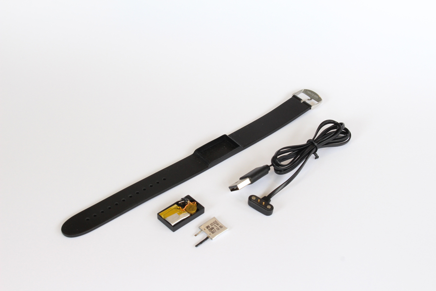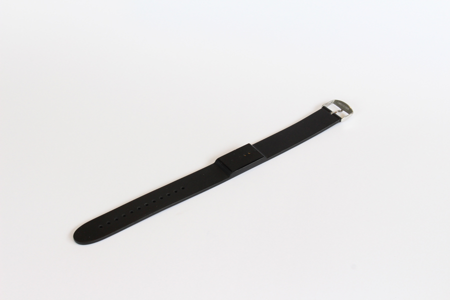 A haptic time telling device that looks like a watch strap. Tap to the strap to check the time. The watch taps the time onto your wrist allowing you to check without looking at it.